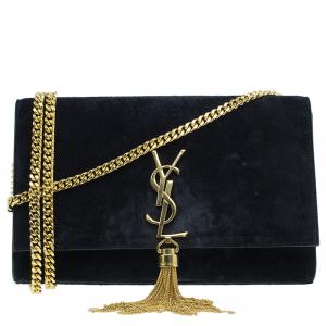 Saint Laurent Paris Black Suede Leather Medium Tassel Crossbody Bag