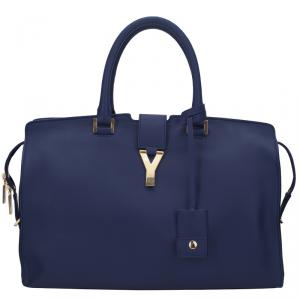 Saint Laurent Paris Navy Blue Calfskin Leather Medium Cabas Chyc Tote