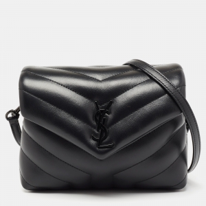 Saint Laurent Black Matelassรฉ Leather Toy Loulou Crossbody Bag