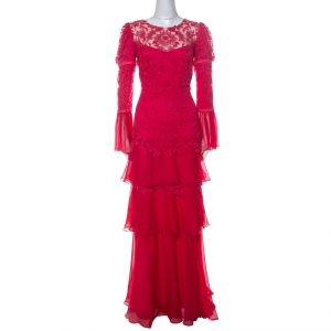 Tadashi Shoji Pink Chiffon & Lace Tiered Moreau Gown L
