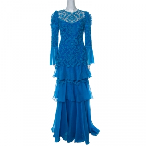 Tadashi Shoji Blue Lace and Chiffon Long Sleeve Gown XL