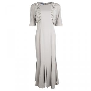 Thierry Mugler Vintage Beige Cutout Detail Flared Bottom Maxi Dress L