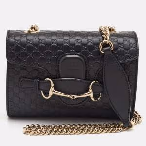حقيبة كتف غوتشي اميلي صغيرة جلد اسود MIcroguccissima