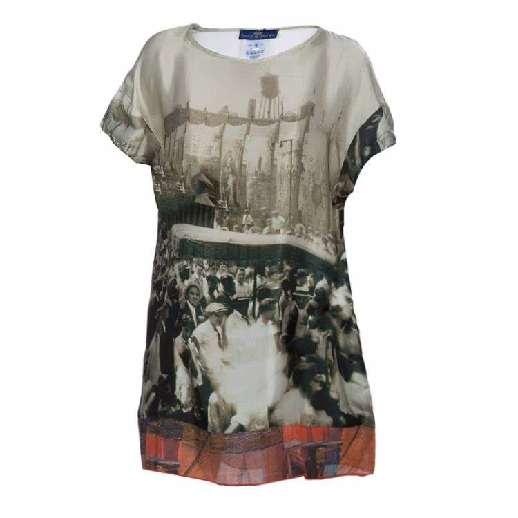 Pre Owned فستان تونك روما إي توسكا حرير بيج مطبوع بصو�رة نيويورك 10 سنوات