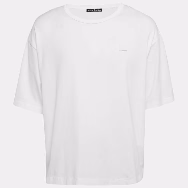 مملوكة مسبقًا تي شيرت أكني ستوديوز قطن أبيض برقبة دائرية مقاس كبير جدًا - إكس لارج