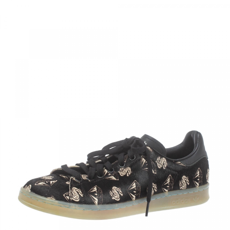 Pre Owned حذاء رياضي أديداس ستان سميث x فاريل ويليامز منخفض من أعلى شعر عجل مطبوع ألماس مقاس 42 2/3