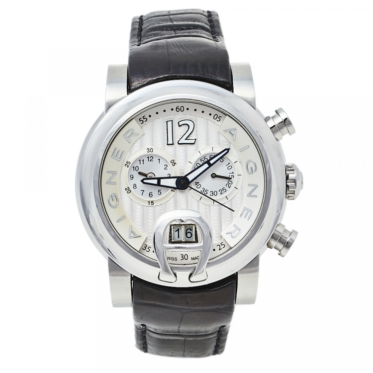 Pre Owned ساعة يد رجالية أيغنر باري ايه37500 جلد و ستانلس ستيل فضية 44 مم