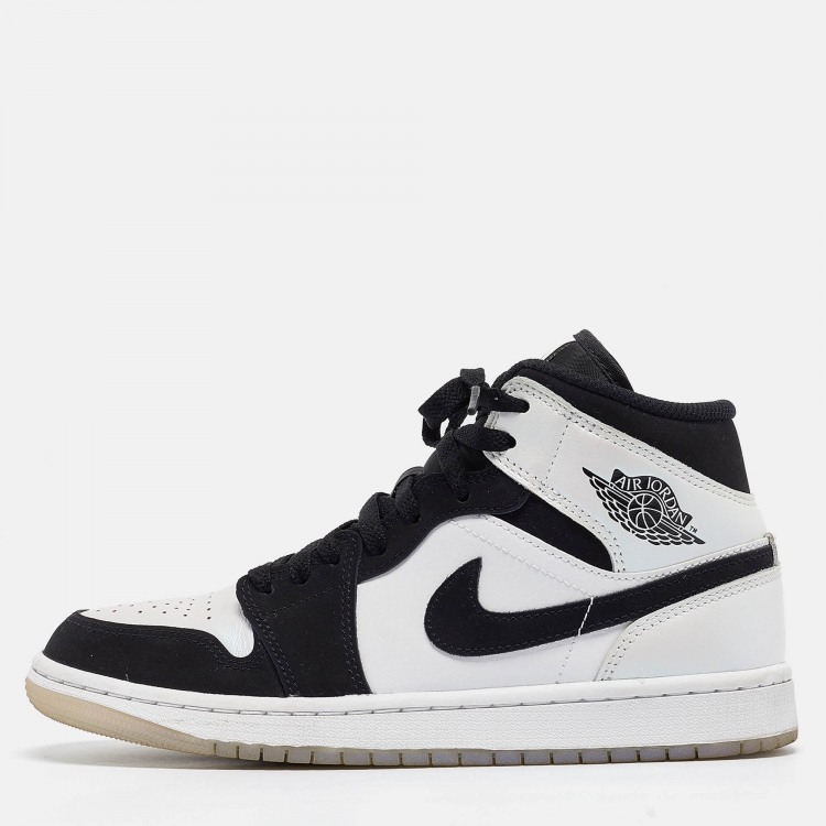 Air Jordans White/Black Leather Jordan 1 Mid Diamond Shorts Sneakers Size 40