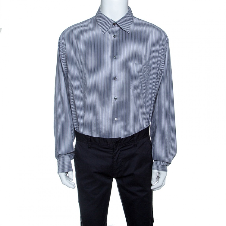 Pre Owned قميص أرماني كالزوني أزرار أمامية أكمام طويلة مخطط رمادي XXL