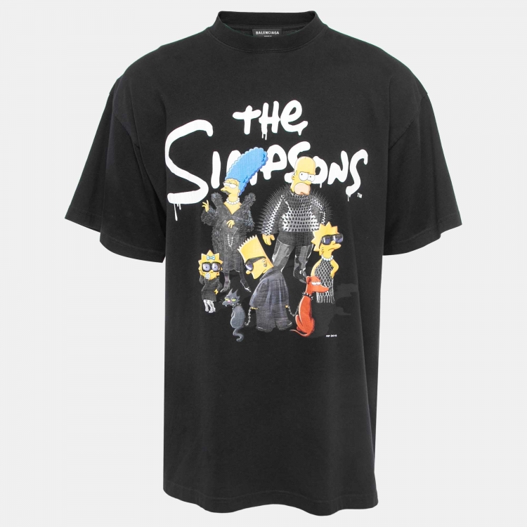 مملوكة مسبقًا Balenciaga Black Cotton The Simpsons Printed T-Shirt One Size