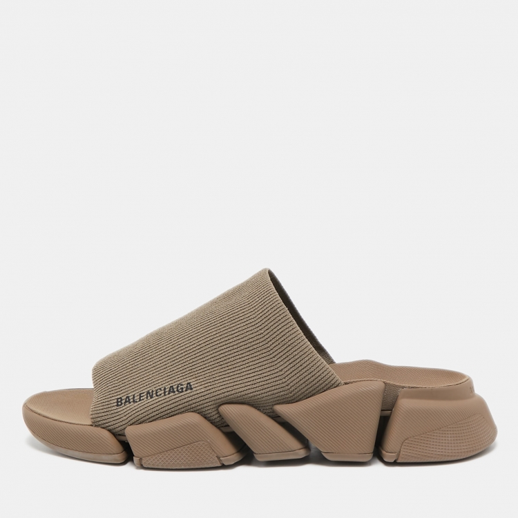 Balenciaga Brown Knit Fabric Speed 2.0 Slide Sandals Size 43