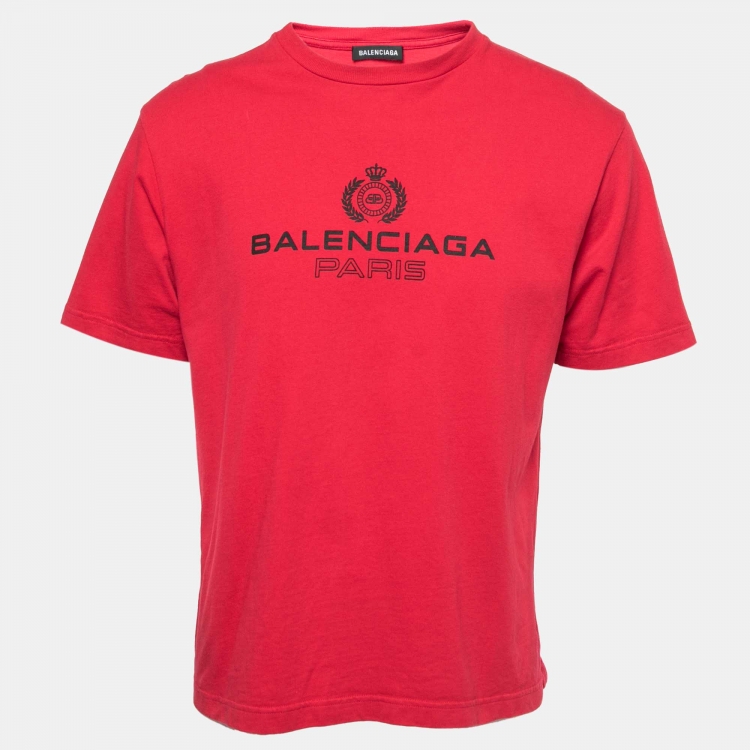 Balenciaga Red Logo Print Cotton T-Shirt S