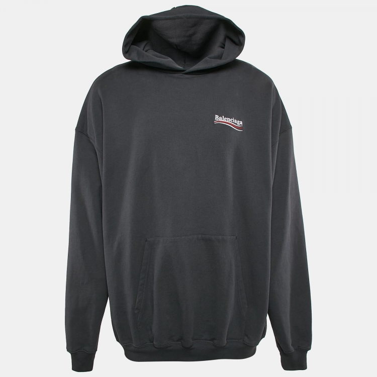 Balenciaga Unisex Grey Logo Embroidery Cotton Knit Oversized Hoodie XS