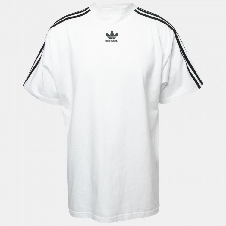 مملوكة مسبقًا Balenciaga X Adidas White Logo Print Stripe Detailed Cotton Half Sleeve T-Shirt L