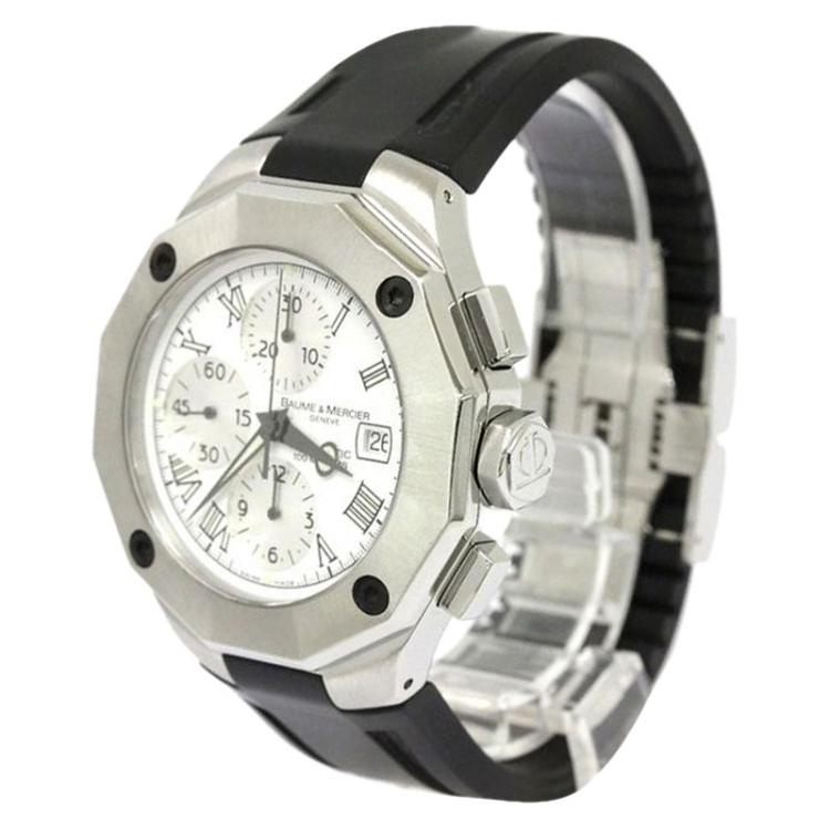 مملوكة مسبقًا ساعة يد رجالية باوميه & ميرسيه ريفيرا XXL ستانلس ستيل بيضاء 43 مم