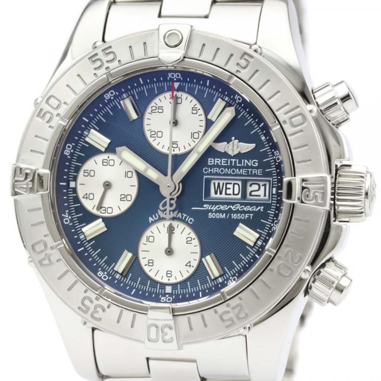 مملوكة مسبقًا ساعة يد رجالية بريتلينغ كرونو سوبر أوشن أوتوماتيكية A13340 ستانلس ستيل زرقاء 42 مم