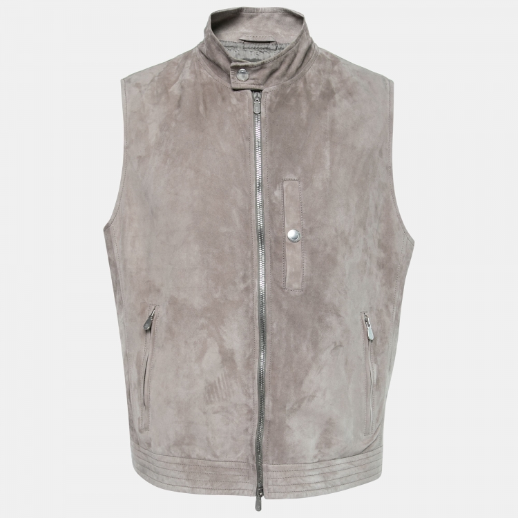 Pre Owned Brunello Cucinelli Grey Suede Zip-Front Vest M