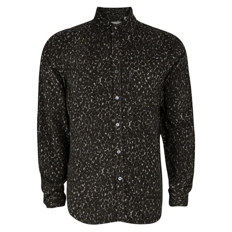 قميص بربري كوردوري أزرار أمامية أكمام طويلة طباعة مموه أخضر L
