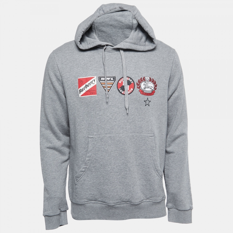 Pre Owned Burberry Grey Logo Printed Cotton Hoodie S