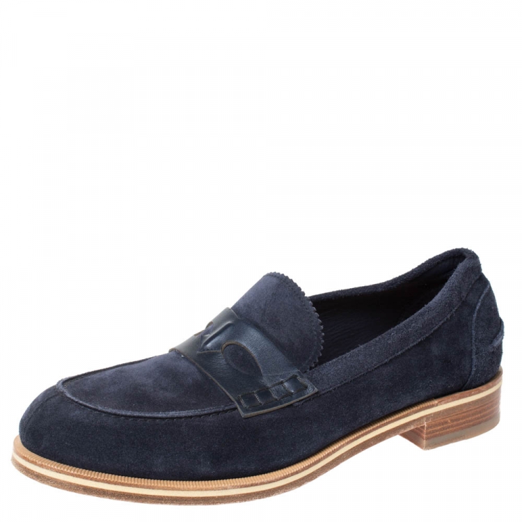 حذاء لوفرز كريستيان لوبوتان فلات مونتزومول سويدي أزرق مقاس 41.5