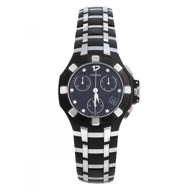 Pre Owned ساعة يد رجالية كونكورد ساراتوغا 14.H1.1881.1 كرونو ستانلس ستيل ومطاط  سوداء 33 مم