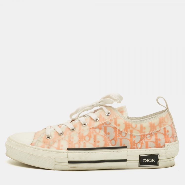 Dior B23 Size 45 White/Orange Oblique Mesh and PVC Low Top Sneakers