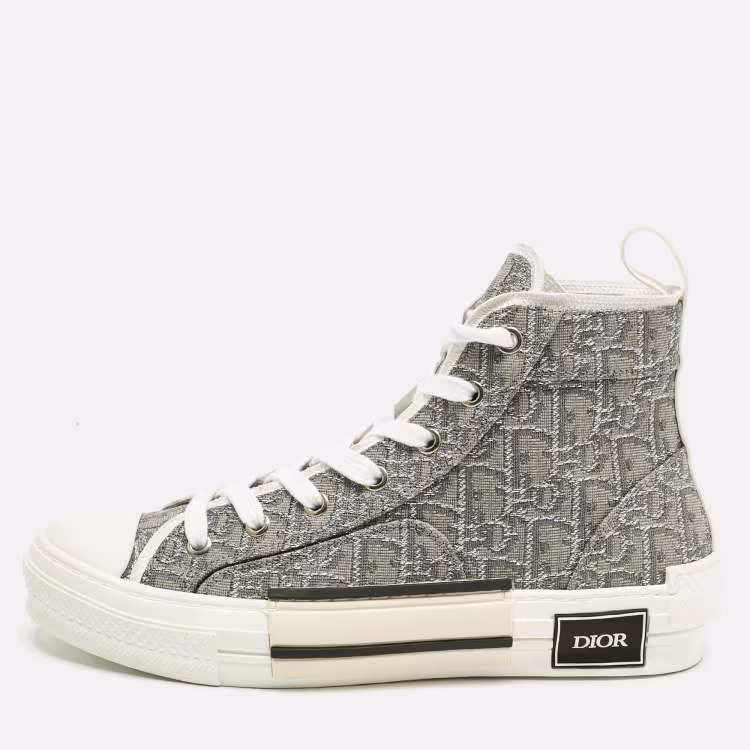 Pre Owned حذاء رياضي ديور كانفاس رمادي B23 بعنق مرتفع مقاس 39