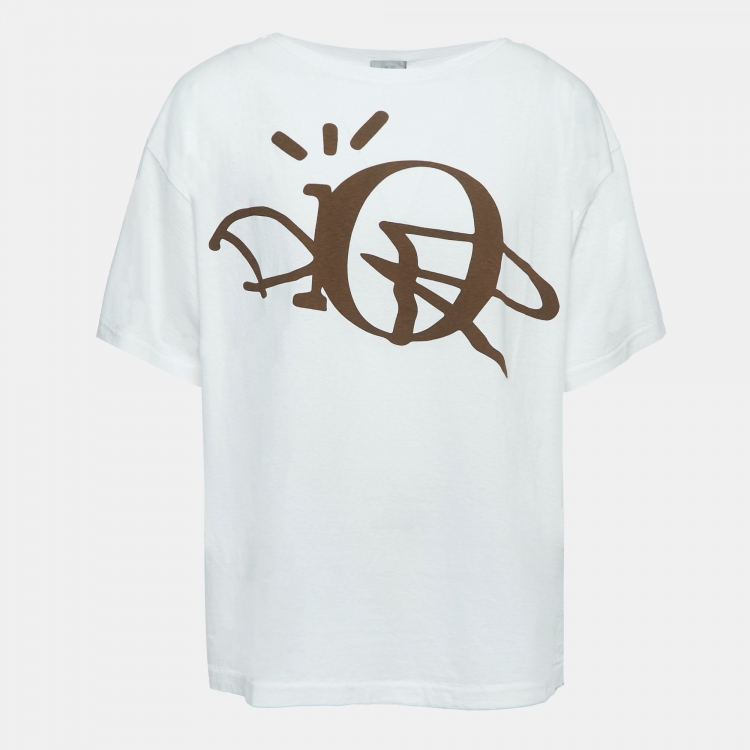 Pre Owned Dior Homme White Logo Print Cotton Half Sleeve T-Shirt L