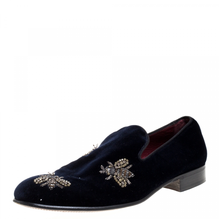 مملوكة مسبقًا حذاء سليبرز دولتشى أند غابانا سموكينغ زخرفة نحلة قطيفة كحلى مقاس 43