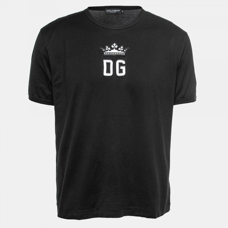 Dolce & Gabbana Black Cotton Crown Logo T-Shirt 2XL