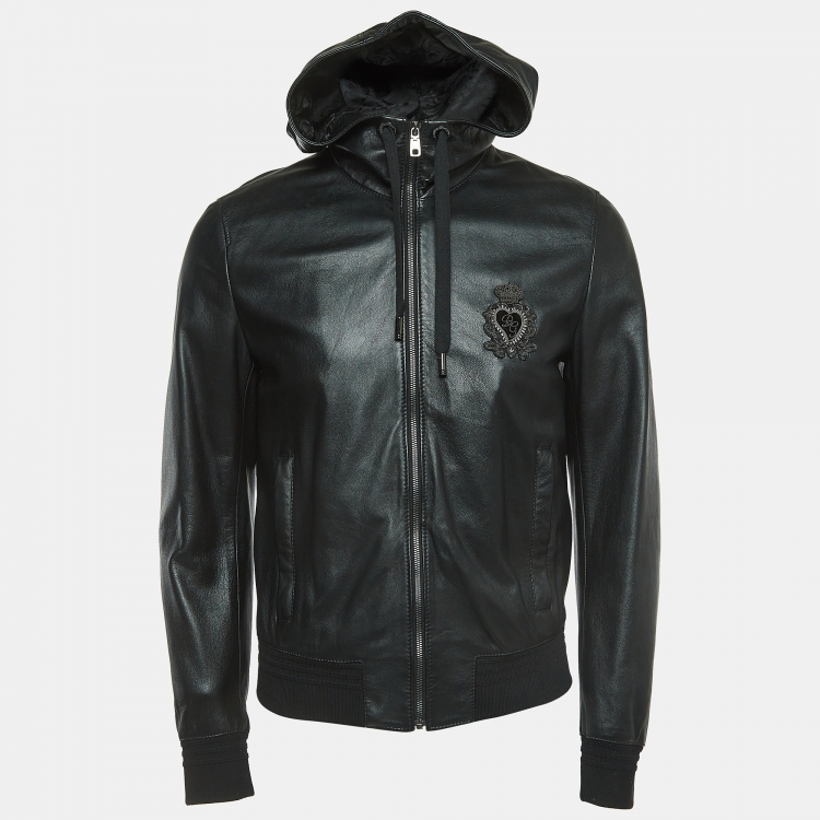 Dolce & Gabbana Black Logo Embroidered Leather Hoodie XL