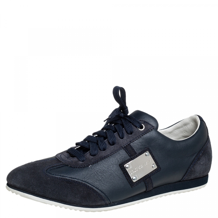 Dolce & Gabbana Black/Blue Suede And Leather Logo Plaque Sneakers Size 41