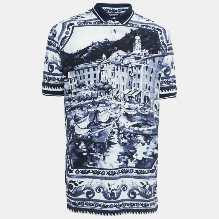 Dolce & Gabbana Blue Print Cotton Pique Polo T-Shirt XL