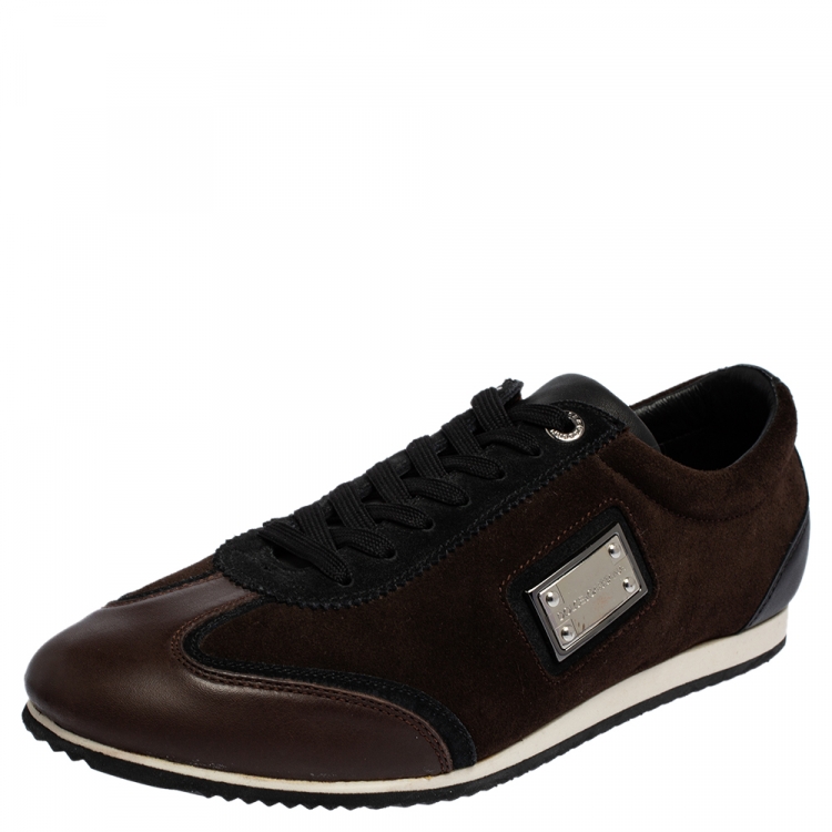 حذاء رياضي دولتشي أند غابانا سويدي وجلد بني برباط مقاس 41