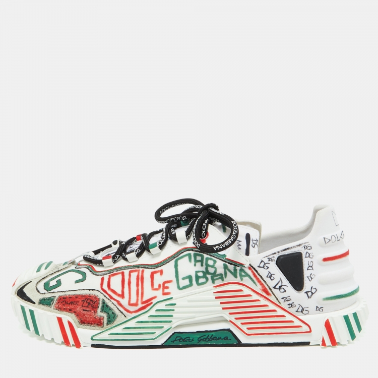 Dolce & Gabbana Multicolor Canvas and Leather Graffiti Print Ns1 Low Top Sneakers Size 44