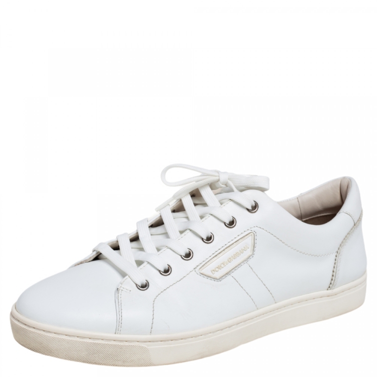Pre Owned حذاء رياضي دولتشي أند غابانا لندن جلد أبيض عنق منخفض مقاس 42