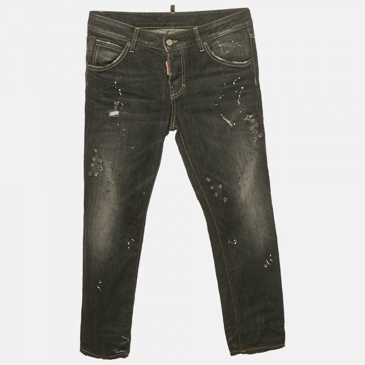بنطلون جينز منخفض الخصر ديسكوارد2 دينم باهت مرشوش بالدهان أسود مقاس صغير خصر 31 بوصة