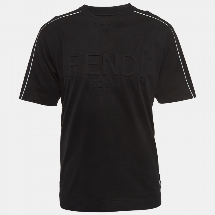 Fendi Black Logo Embossed Cotton Crew Neck T-Shirt M