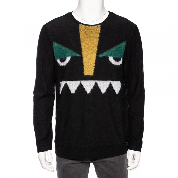 Pre Owned سويتر فندي جاكار موهير وصوف مونستر أسود مقاس كبير جدا