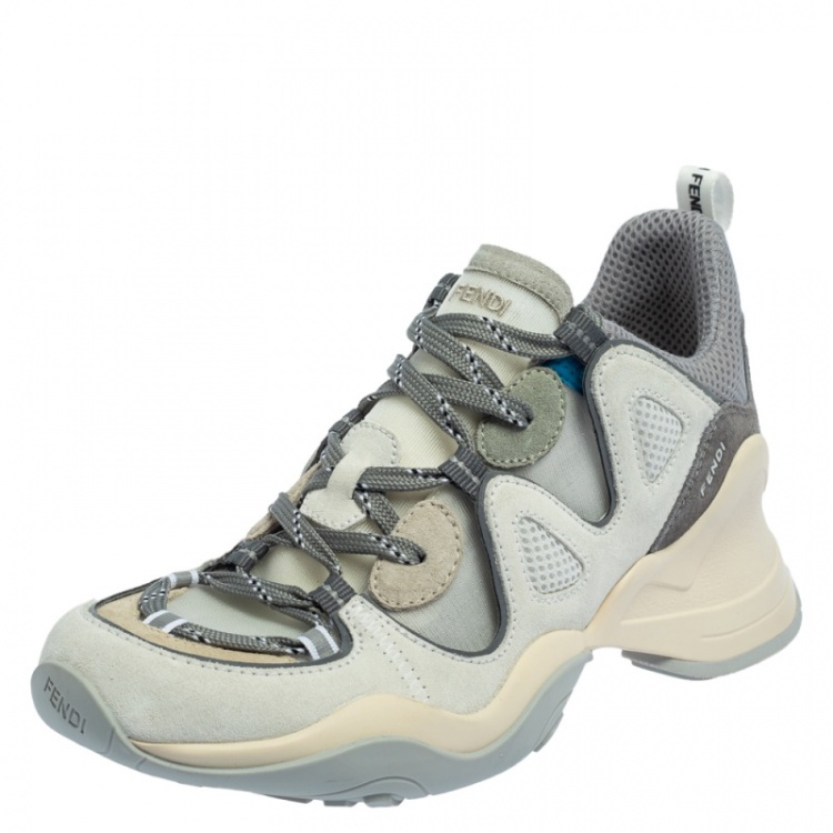 مملوكة مسبقًا حذاء رياضي فندي سويدي رصاصي وشبكة بعنق منخفض مقاس 41