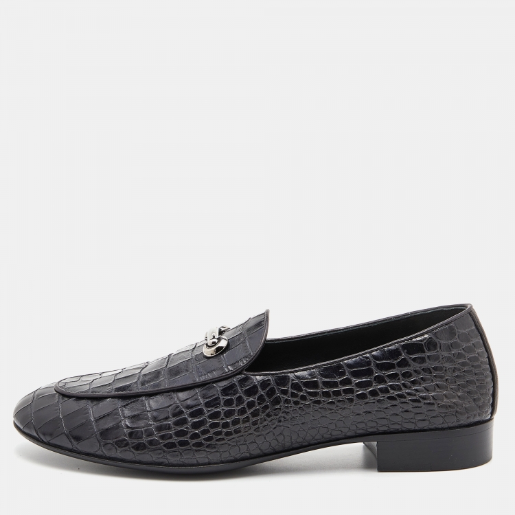 Giuseppe Zanotti Black Cros Embossed Leather Smoking Slippers Size 41