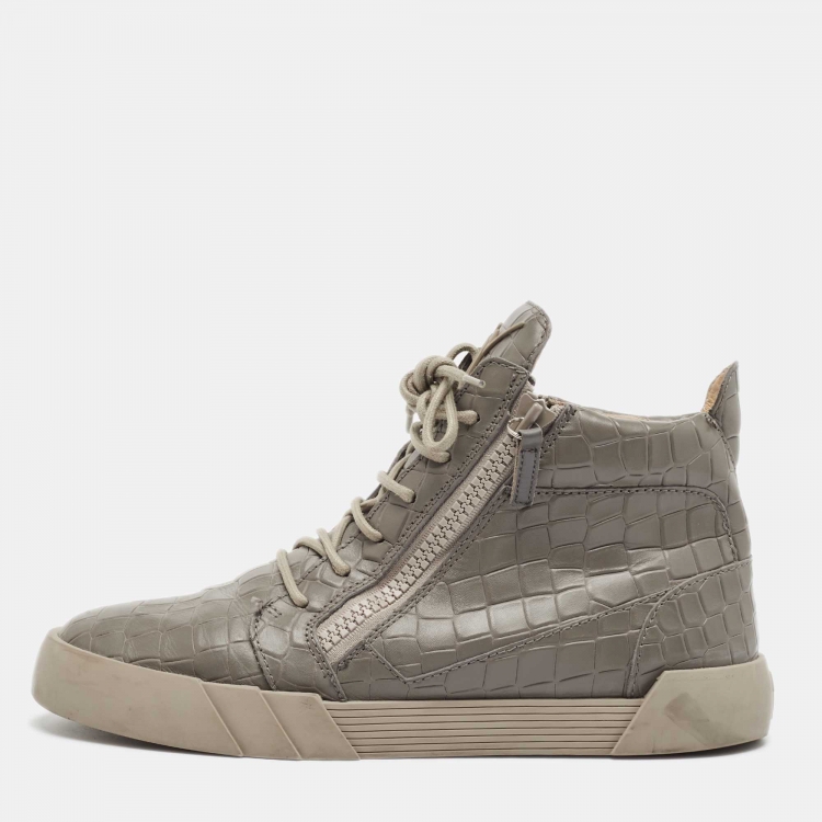 حذاء رياضي جوسيبي زانوتي مزخرف بشكل جلد التمساح رمادي بحافة مرتفعة مقاس 43
