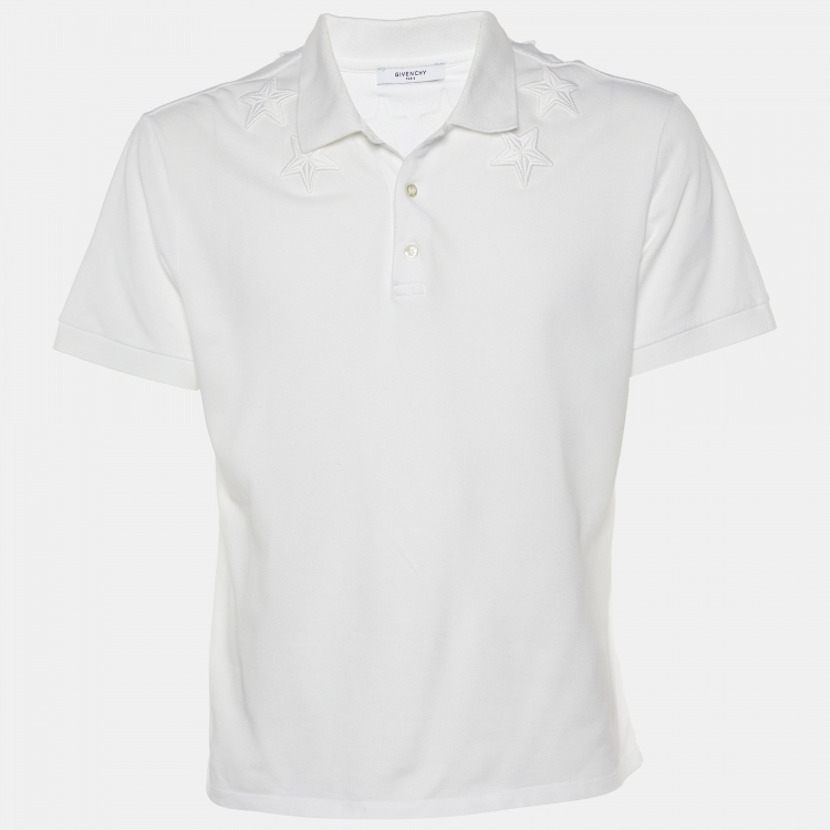 Givenchy White Star Applique Cotton Pique Polo T-Shirt XL