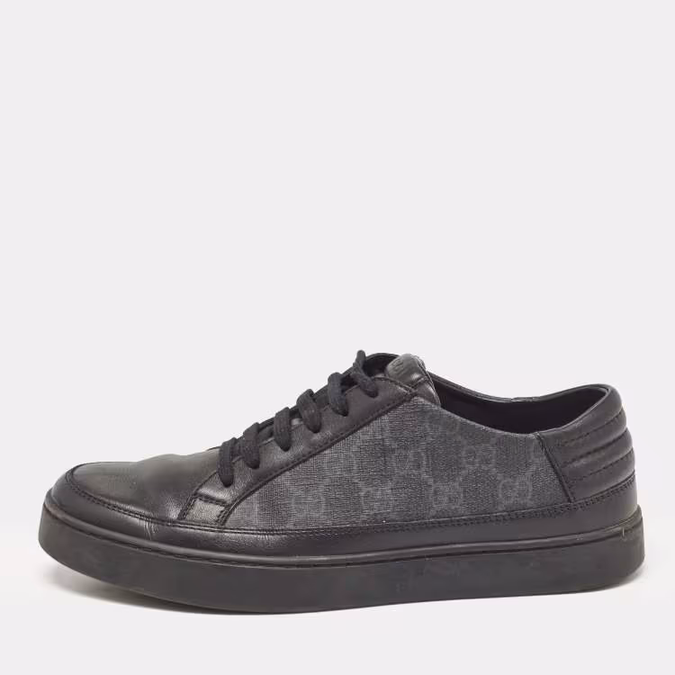 Pre Owned حذاء رياضي غوتشي قماش GG سوبريم جلد أسود عنق منخفض مقاس 40.5