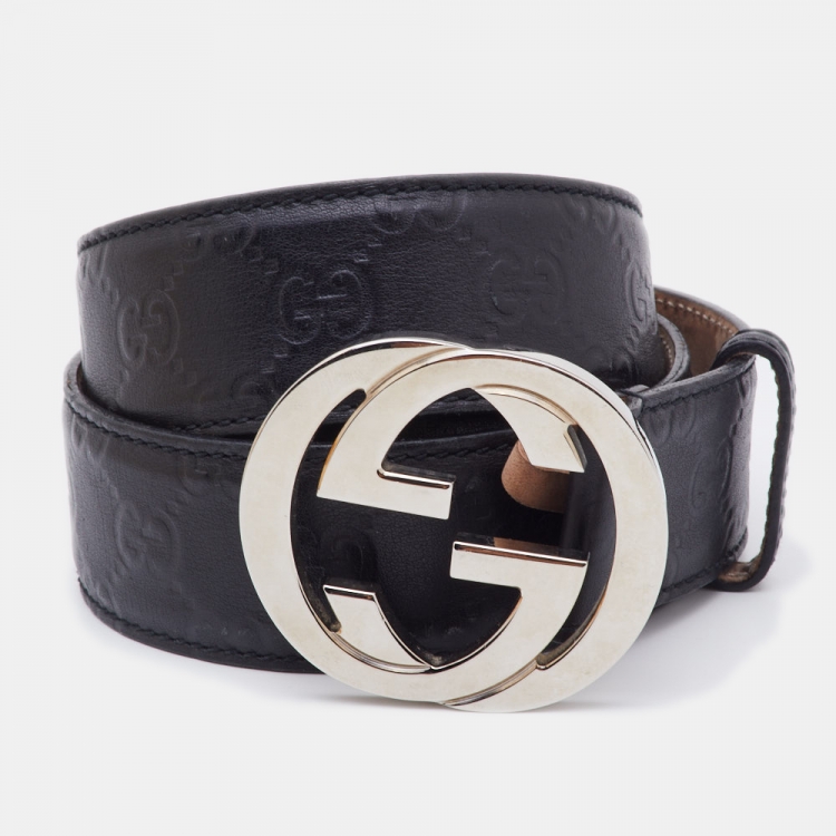 Pre Owned حزام إبزيم حرف جي متشابك جلد غوتشيسيما أسود 80 سم
