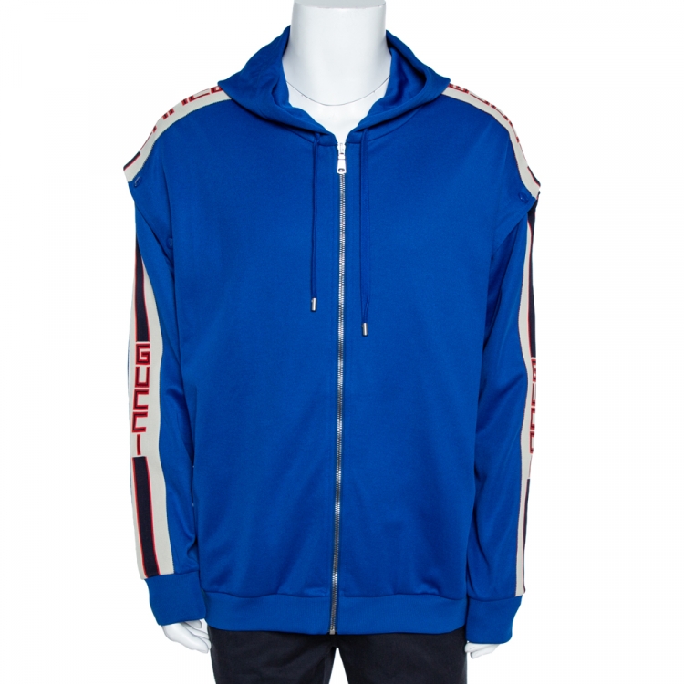 هودي غوتشي أزرق بأكمام قابلة للفصل بسحاب أمامي مقاس كبير - لارج