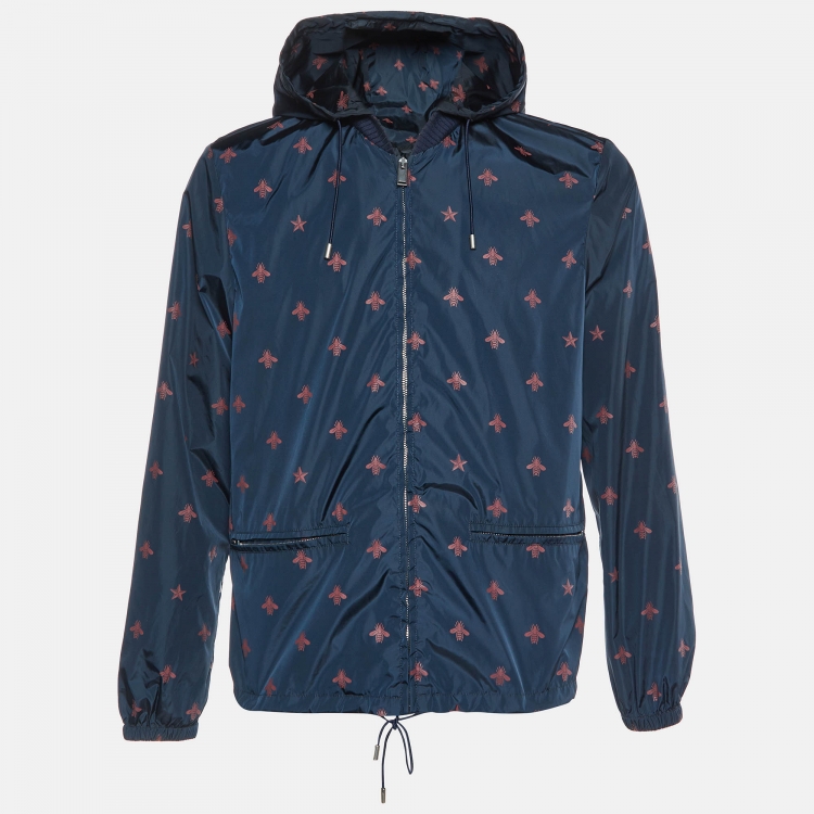 Gucci Navy Blue Wasp Print Synthetic Detachable Hoodie Windbreaker Jacket M