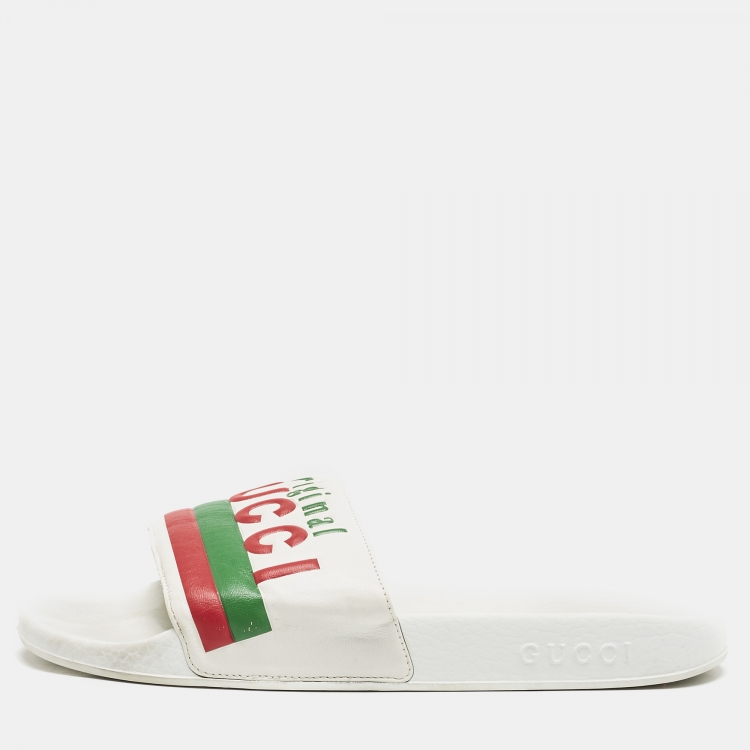 مملوكة مسبقًا صندل غوتشي فلات جلد أبيض أصلي مقاس 43