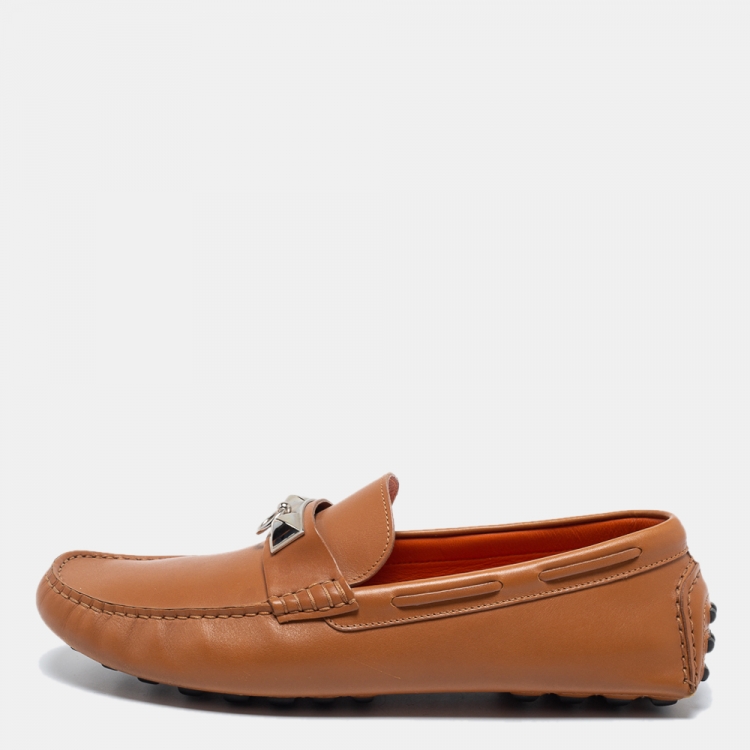 مملوكة مسبقًا Hermes Brown Leather Slip on Loafers Size 42
