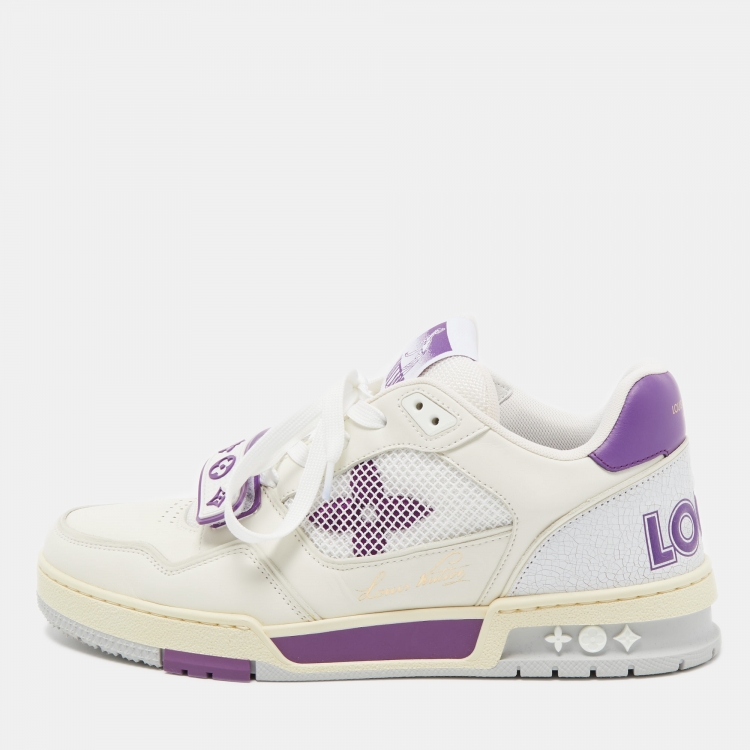 Pre Owned حذاء رياضي لوي فيتون جلد و شبك أبيض/أرجواني LV مقاس 41